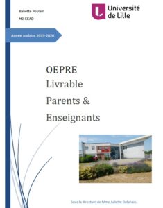 Dans le cadre d'un master FLE à l'université de Lille, Babette Poulain, enseignante en lettres modernes au collège Josquin des Prés à Condé-sur-Escaut et intervenante dans le dispositif OEPRE de son établissement, a élaboré un outil pédagogique spécifique. Celui-ci est composé de différentes séances organisées autour des éléments à connaître dans la vie du collège pour permettre aux parents de mieux comprendre et accompagner la scolarité de leurs enfants. L'outil est organisé en deux parties : une partie « Parents » comprenant les différents documents et supports à étudier, et une partie « Enseignants » qui décrit précisément comment organiser les séances à partir des documents authentiques liés à la vie au collège.
