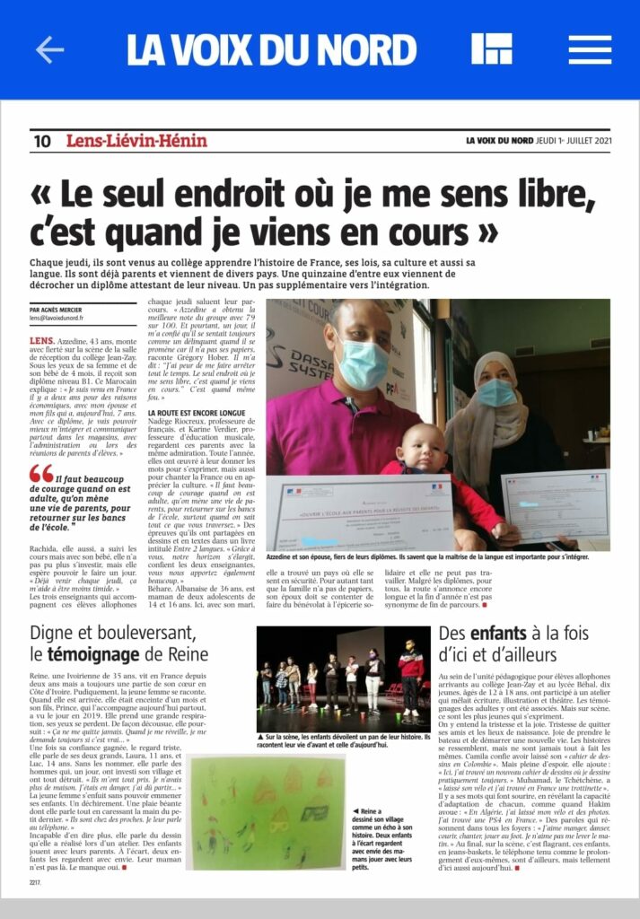 Les élèves des UPE2A du collège Jean ZAY et du lycée Béhal de Lens et les parents de « Ouvrir l’école aux parents » ont travaillé autour d’un projet.