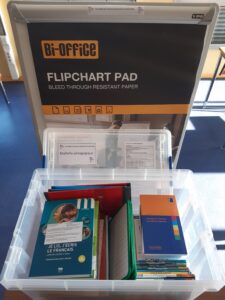 - Une clé USB avec des ressources imprimables (disponibles gratuitement en ligne), deux tablettes avec toutes les pistes audio des ouvrages et des applications gratuites, des ardoises, un Paperboard et des fournitures scolaires offertes par l’association « Feutres et compagnie ».